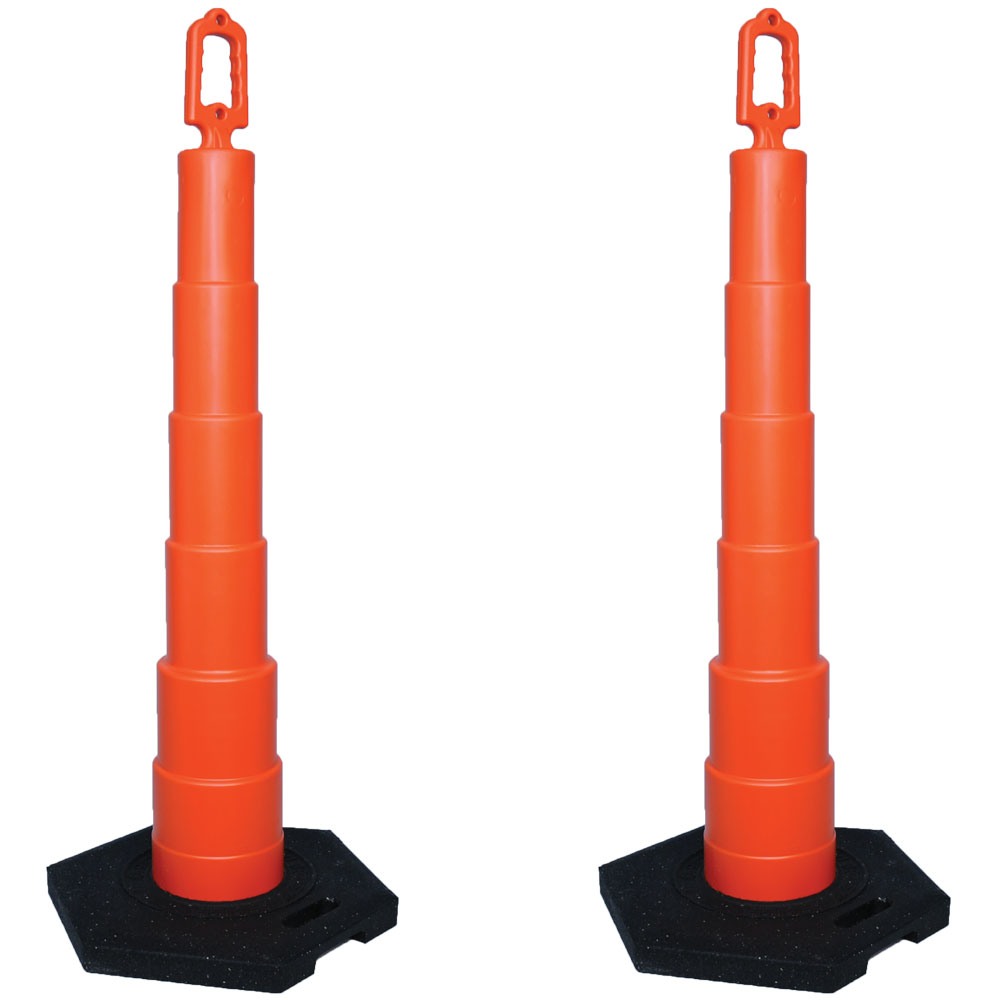 These 48” tall Barrier Tape Cones are perfect for temporary traffic and crowd control. The sturdy fluorescent orange safety cones feature a top ring for connecting and threading barrier tapes. Use several cones to create a perimeter on solid surfaces in open crime scenes. Each cone includes a heavy rubber base to prevent tipping. May be used with our Barrier Tape Posts when transitioning from soft soil to solid ground surfaces. Place one cone every 15 to 20 feet. Provided as a set of two Barrier Tape Cones.