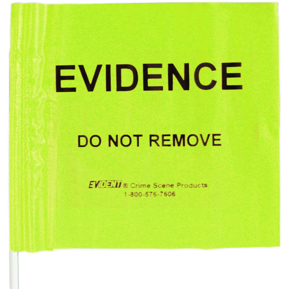 EVIDENT reusable Crime Scene Flags are the perfect way to mark an outdoor crime scene or a search and tracking area. These durable flags feature a 4″ x 5″ blank or imprinted flag. Each flag is attached to a 24″ heavy duty plastic stake. The plastic stake material will not bend or puncture carrying cases or other items. Inserts easily into soil or sand. Will not rust like similar metal stake flags. The plastic stake is easily trimmed to provide a shorter flag when needed. The yellow or orange colors are very bright, making them ideal for photography and crime scene mapping. Provided in packages of 100 crime scene flags. Flag Storage Tube also available.