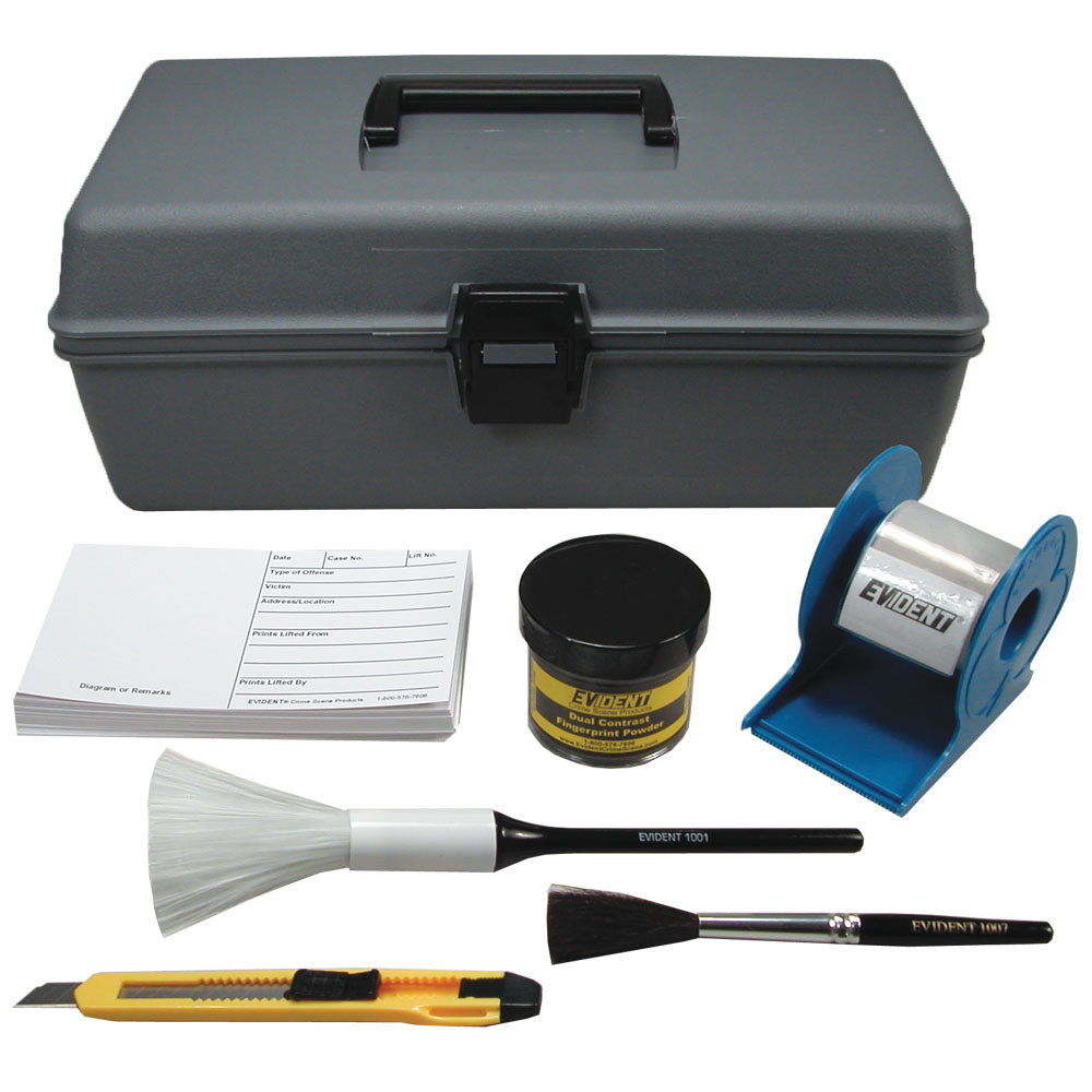 This versatile kit is designed for the more experienced crime scene technician who prefers a tape dispenser, as well as, a 5” Camel Hair Brush to fine tune latent prints. Includes Dual Contrast powder. Neatly contained in a plastic field case with foam insert.