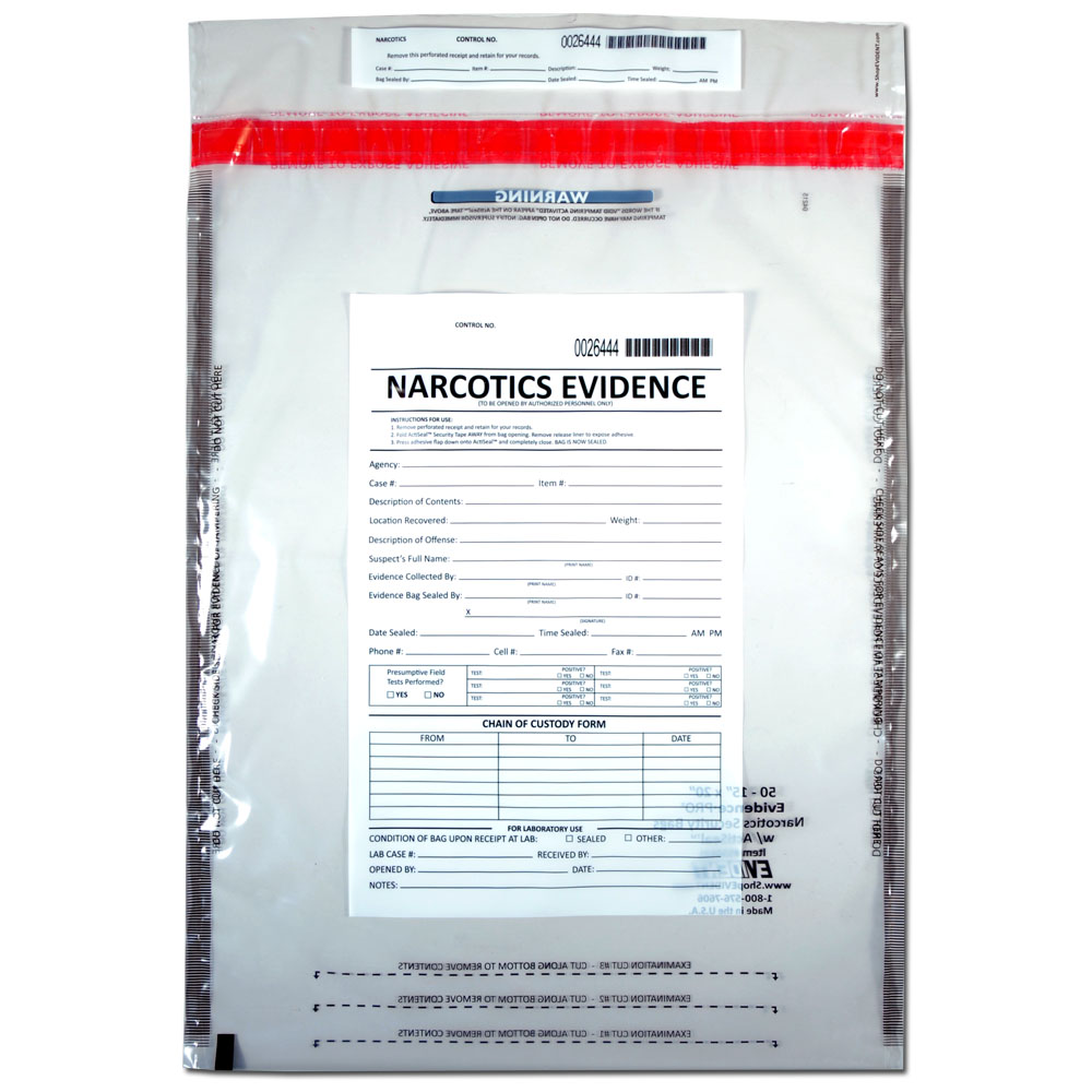 Evidence-PRO Narcotics Evidence Security Bags w/ ActiSeal™ are intended for use with confiscated drugs. Each bag is of the same construction and materials as all Evidenced-PRO security bags, including a tamper indicating Acti-Seal™ to ensure the security of contents and pre-printed control tracking numbers. Available in two sizes. Custom printing available. Narcotics Evidence Security Bags w/ ActiSeal™ provided in individual packages or in bulk packages.