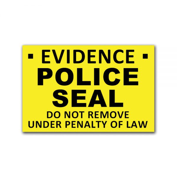 These yellow 2” x 3” paper Evidence Seals are perfect for securing doors on structures and vehicles. Apply to objects at the scene to mark larger items of interest. Provided as either Police or Sheriff seals.