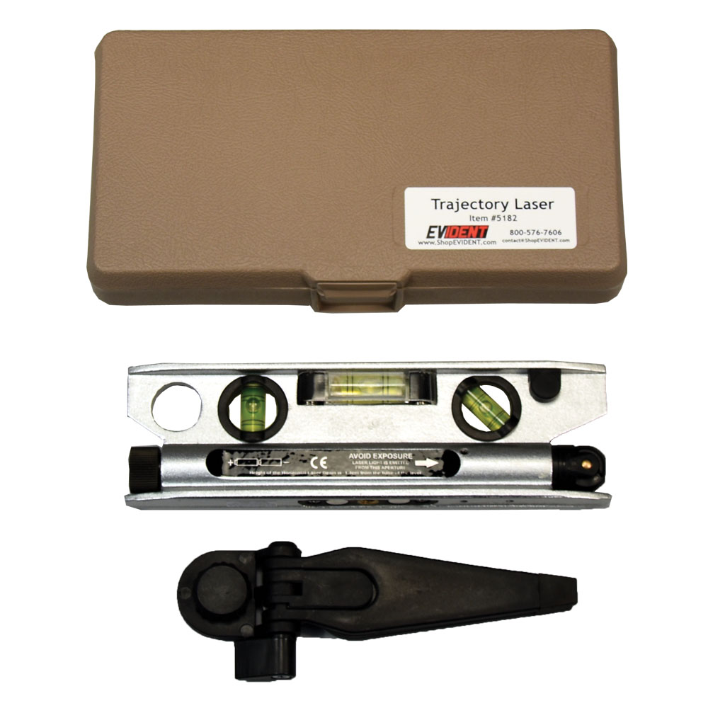 This compact Trajectory Laser projects a red laser beam to assist in determining trajectory. The included mini tripod is easily adjusted. The class IIIa 5mW laser can be switched to project either a beam or a line. The magnetic base may be attached to objects. Powered by two AAA batteries. Includes a compact plastic case. Laser wavelength is 650nm.
