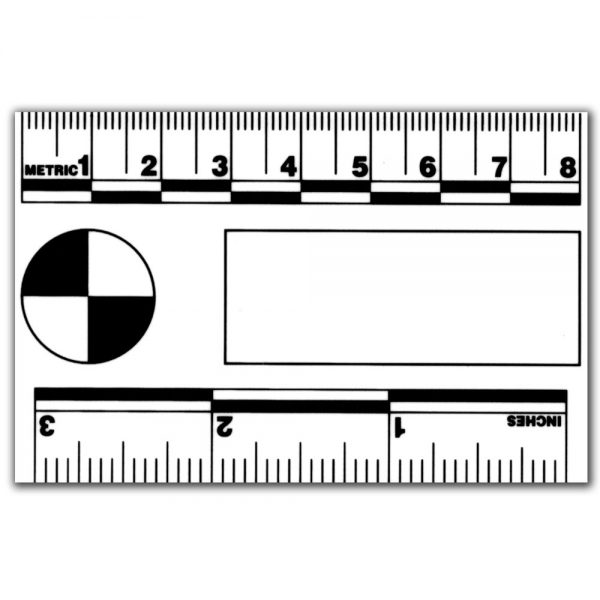 These Paper Credit Card Size Photo Scales are ideal for use at contaminated scenes. Features the same imprint as the popular Credit Card Size Photo Scales. The universal design may be used for fingerprint and evidence photography. The compact size fits easily into field kits. Available in a resealable package of 100 disposable paper photo scales.