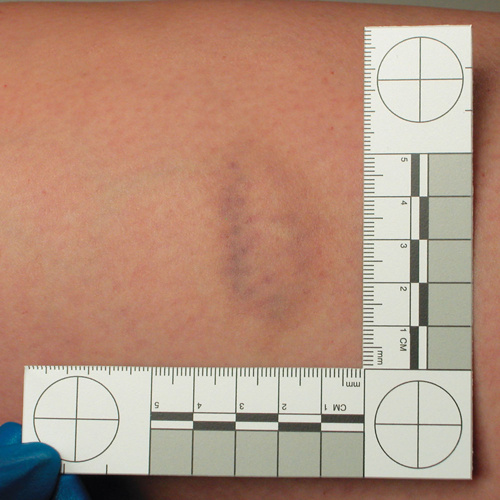 These 5cm x 5cm L-shaped ABFO style scales are perfect for all areas of forensic science photography. An L-shaped scale allows for correct perspective documentation of the evidence, preventing distortion of the image. Printed on rigid plastic with a matte finish. Perfect for photography in most lighting conditions. White scale includes photo gray imprint, fluorescent scale is imprinted bright orange on white plastic. Custom printing available. Accuracy verified with a NIST traceable standard.