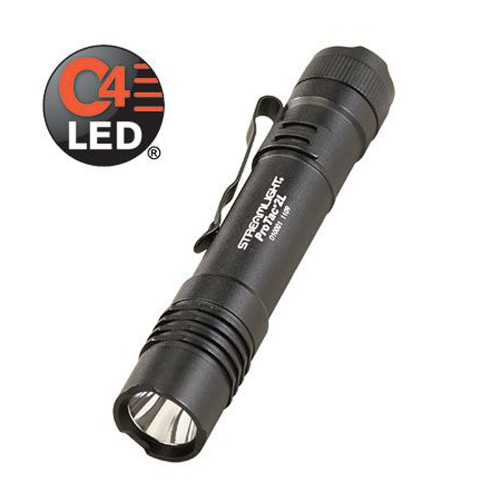 The ProTac 2L provides ultra bright illumination at 260 lumens in a compact design powered by two CR123 lithium batteries. Includes a tail-cap switch and pocket clip. Measures 4.77″.