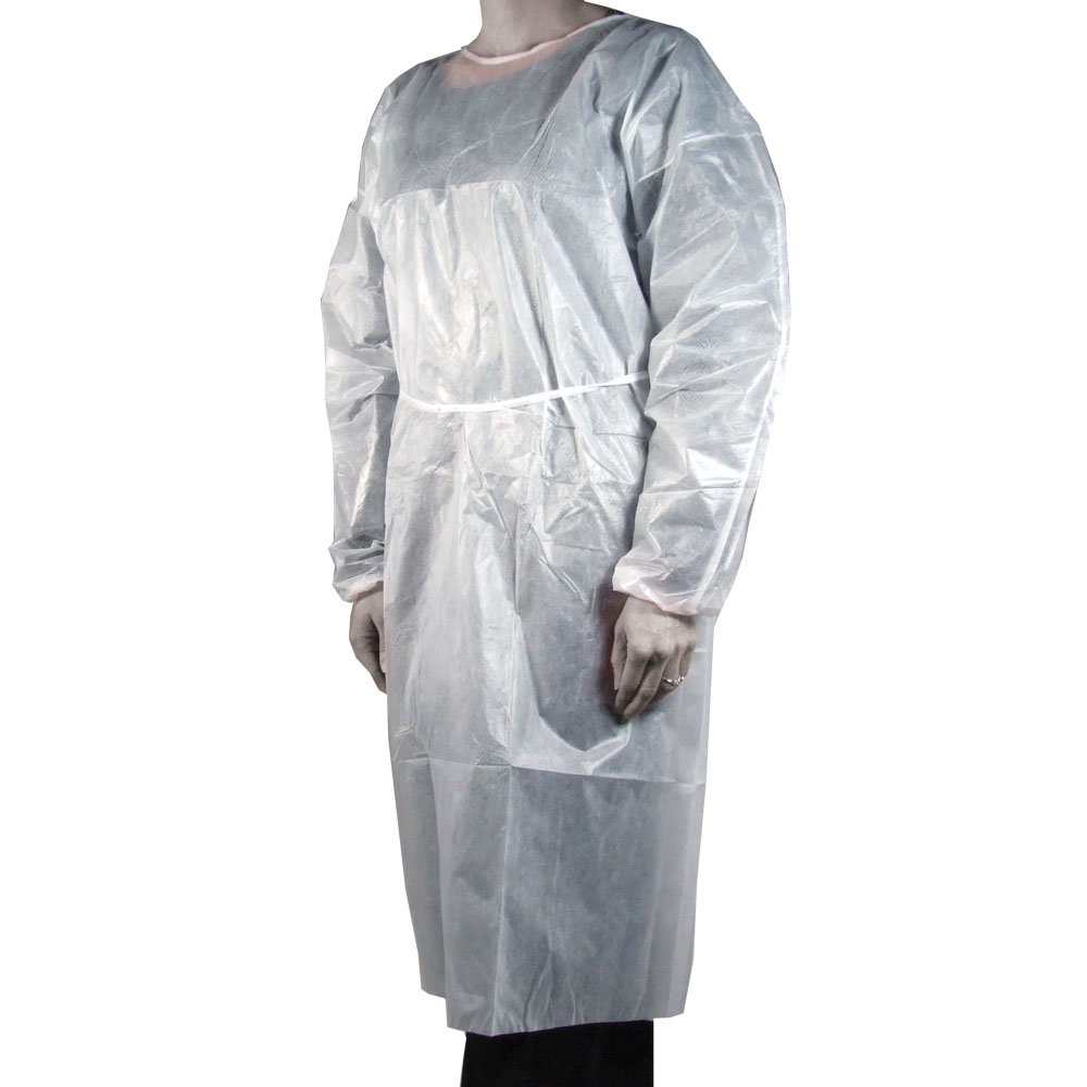 This lightweight disposable Protective Gown is polyethylene coated and intended for use when exposure to fluids may be a risk. Gown includes elastic wrists, extended length, and waist ties. Provided as a package of 5 gowns.
